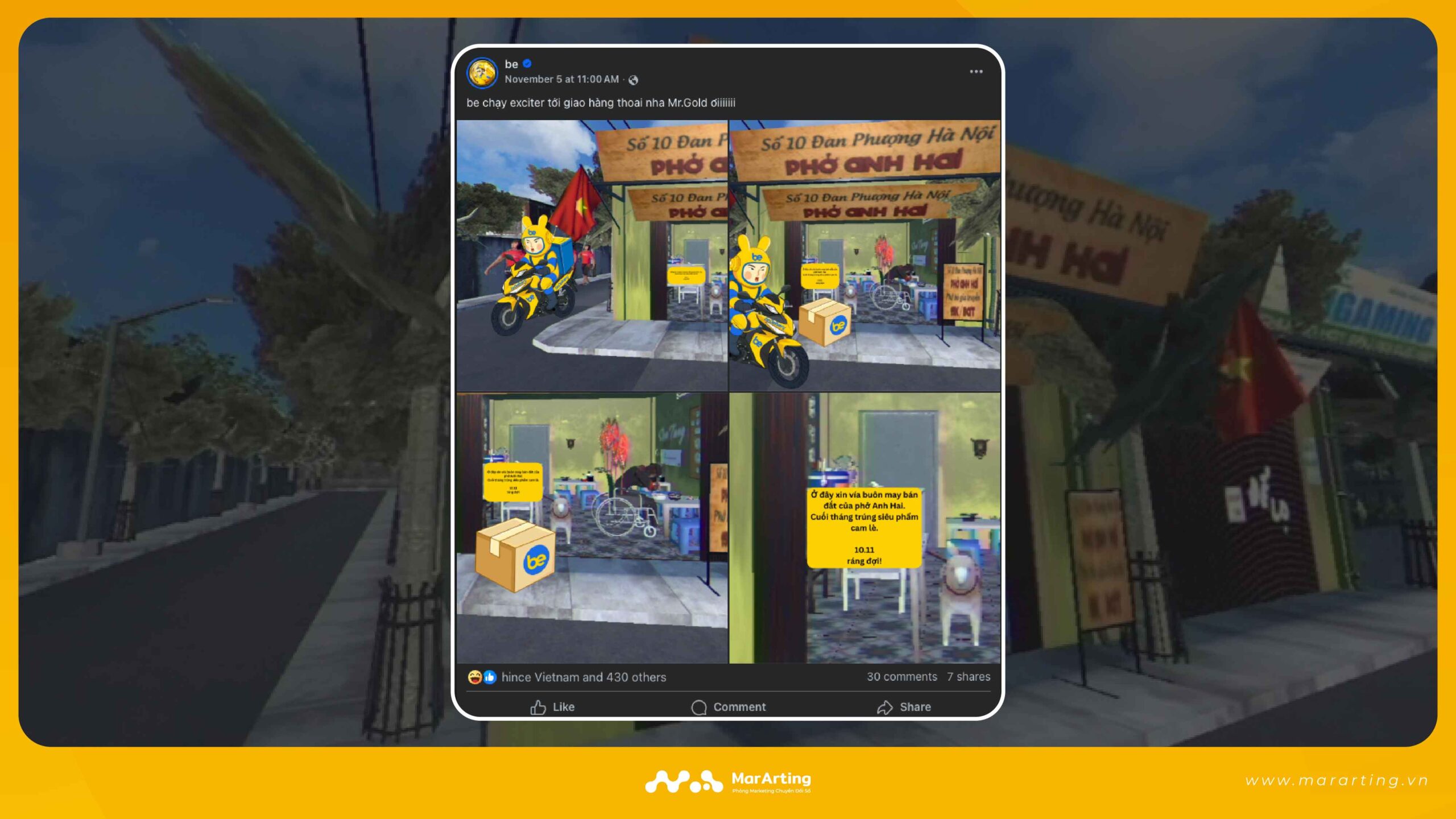 - be: Fanpage của Be cũng tham gia với hình ảnh tài xế áo vàng đang “hoang mang” tìm đường đến “Số 10 Đan Phượng”, kèm caption hài hước: “Cuốc xe đi đâu cũng nhận, trừ cuốc đi tìm quán Phở Anh Hai vì tài xế tụi em tìm không ra!”